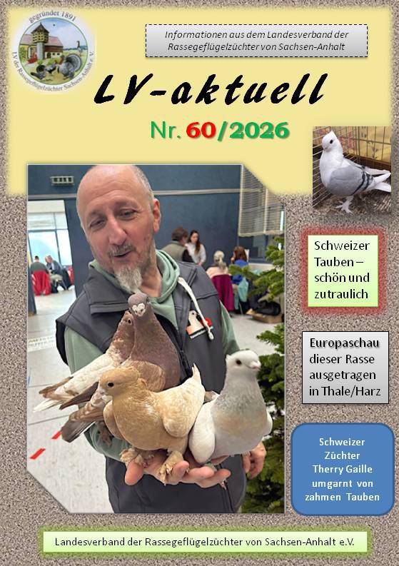 Unser Zuchtfreund Dirk Laumann, welcher der Ausstellungsleiter der geplanten Hauptsonderschau in Lehre im Januar 2028 sein wird, gab uns einen Einblick in seine bisherigen Überlegungen und Planungen in Vorbereitung der Ausstellung, welche von unserer SV-Gruppe Sachsen-Anhalt und dem Rassetaubenverein Harz-Heide ausgerichtet wird.